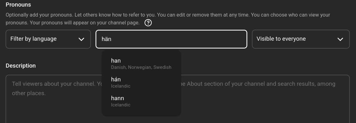 arrow-up1-23arrow-down1imageYoutube doesn't support my pronoun (or custom pronouns not in their predefined list) 🙄plus-squareTheLeadenSea@sh.itjust.worksEnglish · 11 hours agomessage-square5linkfedilink