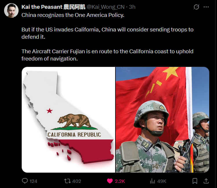 Fuck it. Chips on the table, china taking over america would be a net positive at this point. I’ve never bought into the “country bad because ideology different” bullshit we’re fed here in the us. As I can see from here, just about any other large nation assuming control would bring me everything I ask my government for as a default.