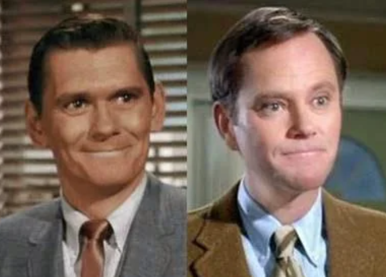 Dick York (left), and Dick Sargent (right) both as the character Darren Stephens on the old American sitcom Bewitched.