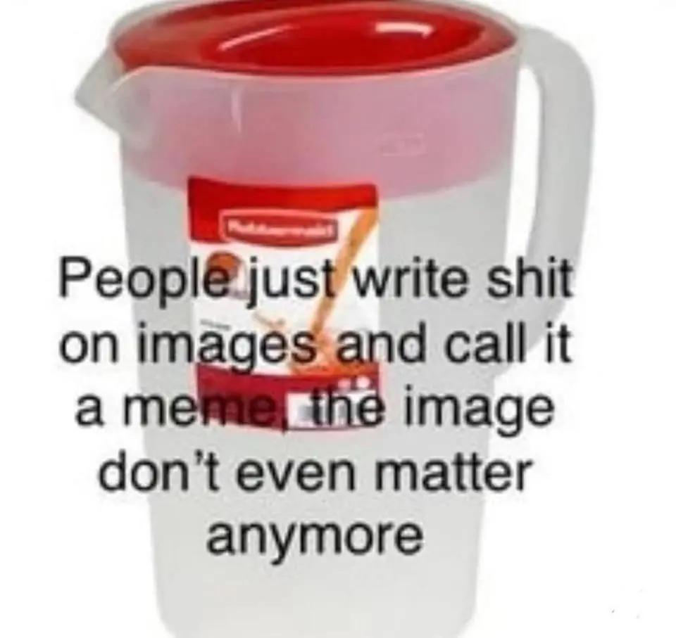 The emptiness of the pitcher is symbolic of the meaninglessness of the meme.