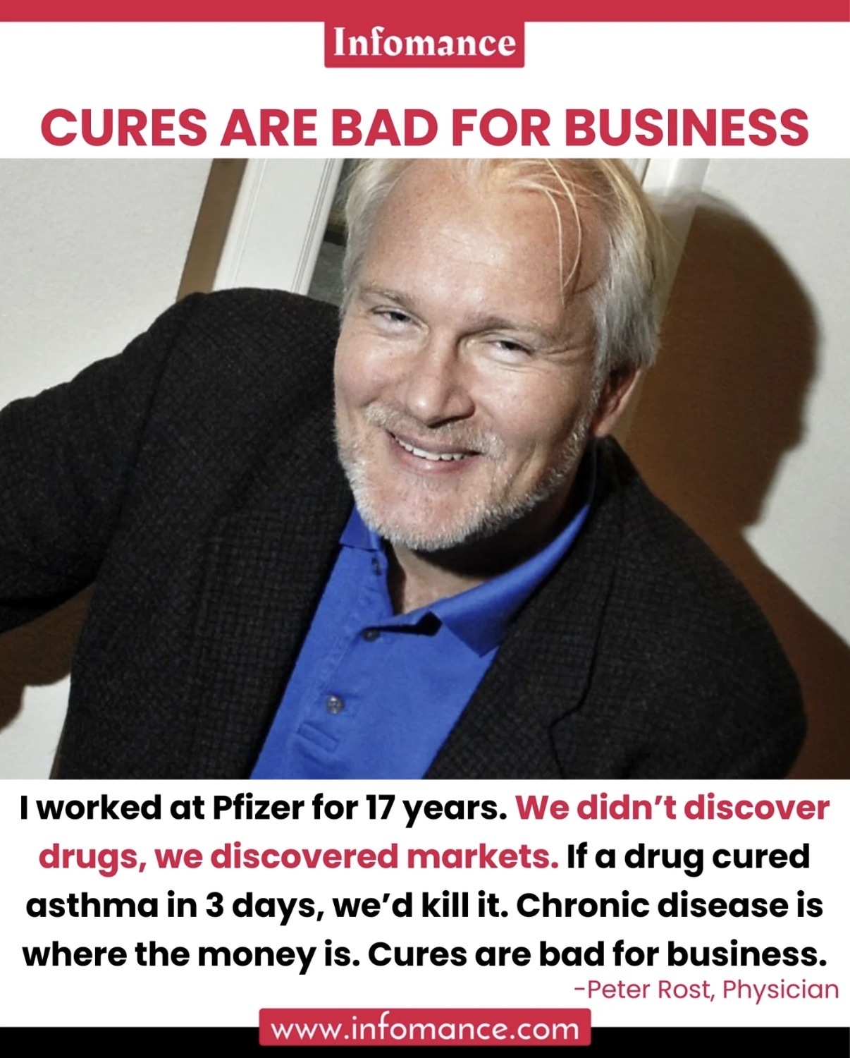 So if this person no longer works for Pfizer, spill the beans! Tell us about all of the cures that it killed.