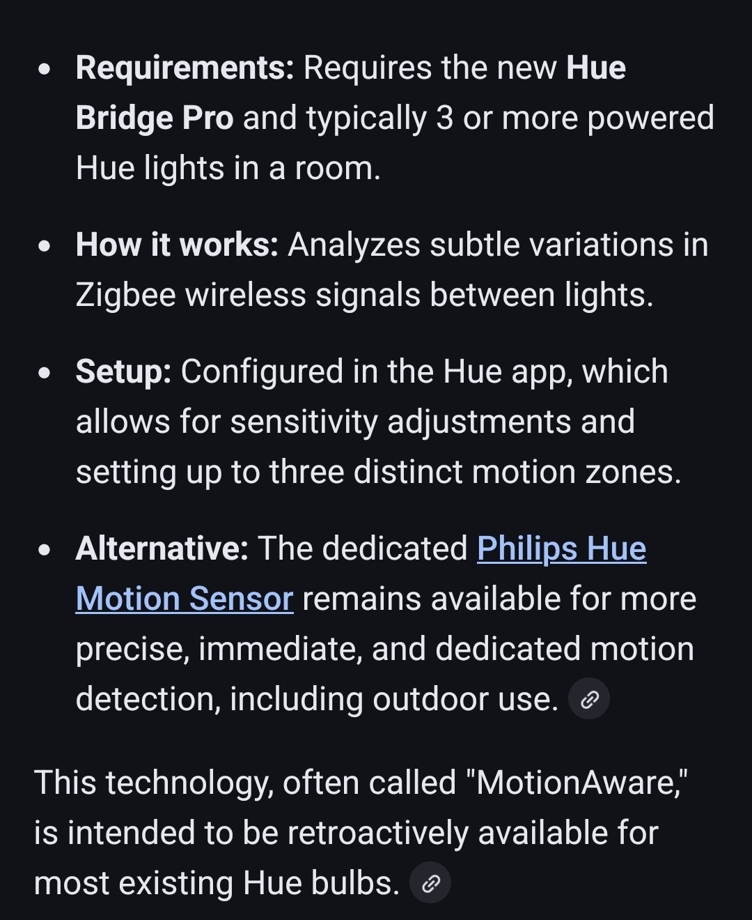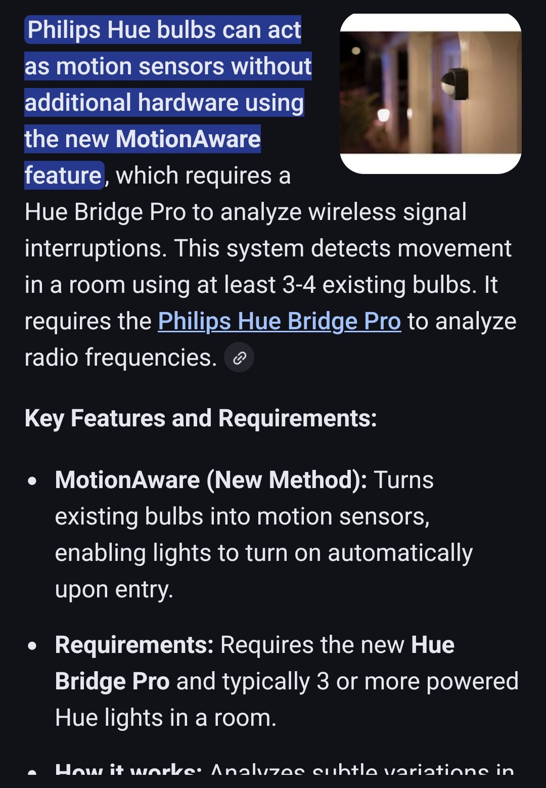 Then again anyone super into privacy wouldn’t probably love these, as as far as I know, having several WiFi using bulbs on the ceiling also means that anyone with access to the data could actually function as movement sensors. So the metadata Hue has about me (or at least could access if they wanted to) would tell them when I’m in bed or in the kitchen or having guests or whatnot. Apparently it’s based on the attenuation of the signal strength and based on those numbers you can “see” the object moving from the signal strength changes.