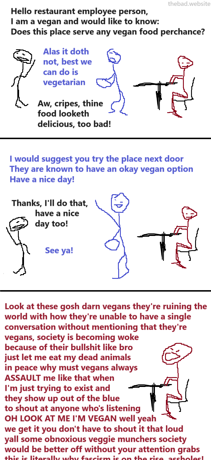 I normally am annoyed by shitting on vegans but somehow this one was perfect and actually made me laugh