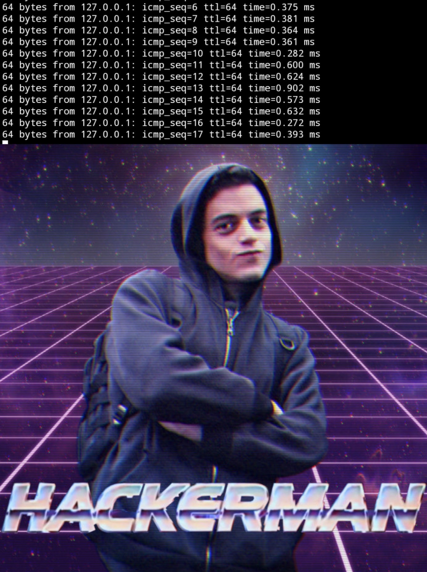 So now: open terminal -> type in “ping 172.0.0.1” -> fullscreen the terminal -> pretend to be hacker
