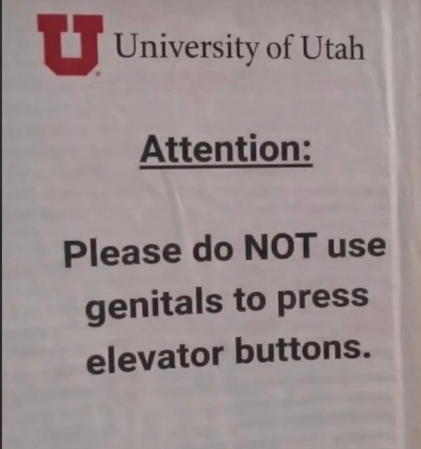 You’re feeling depressed. You feel like a loser. Then you get in an elevator and see this sign. Now you’re not even allowed to press the elevator buttons with your genitals.