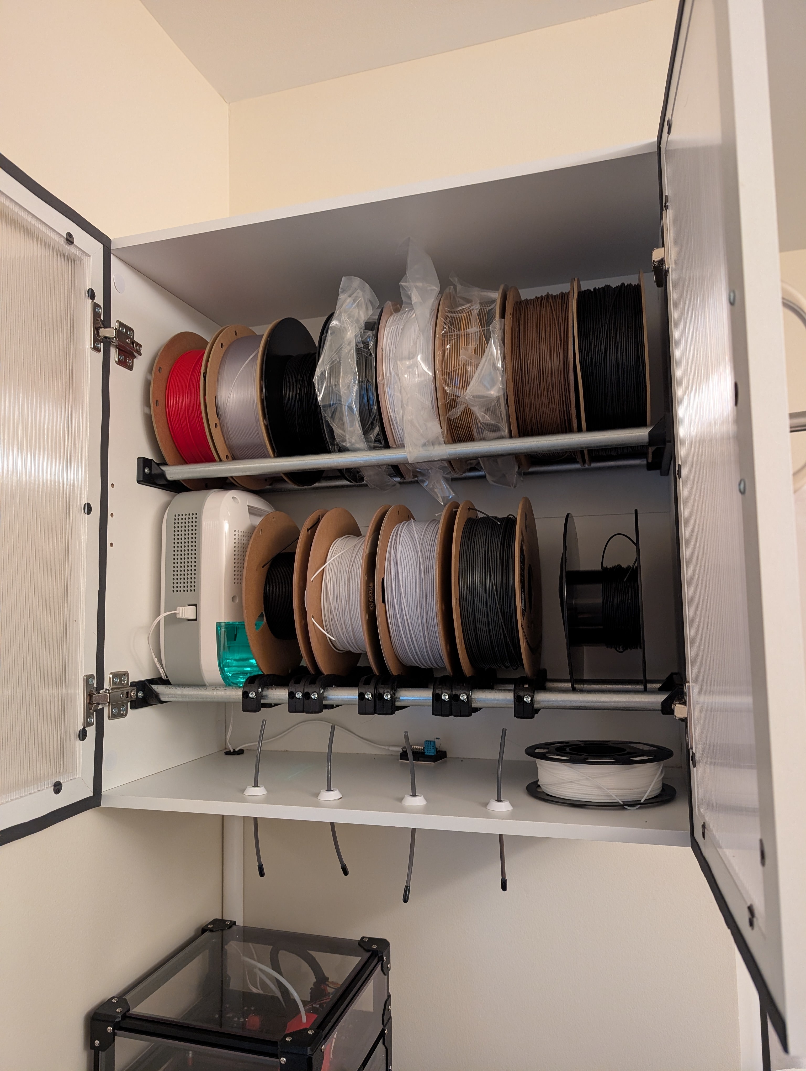 I’m doing an experiment with a cabinet for filament with a small dehumidifier in it. I can get it to sit at 35%, but not much lower. I’ve sealed the cabinet with foam tape, and dried most of the filament first.