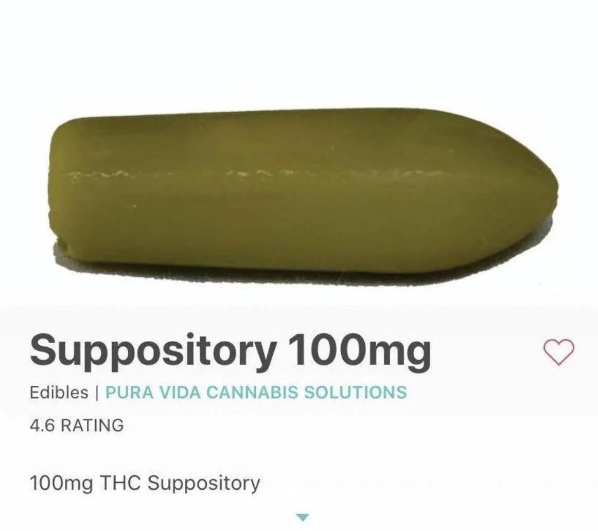 The bioavailability of a suppository instead of edible is insane by comparison. Someone who gets a lower reaction from a ~100mg edible would get similar effects from a suppository less than half that strength because it’s being absorbed by another part of the body - different receptors stimulated and less for it to travel through.