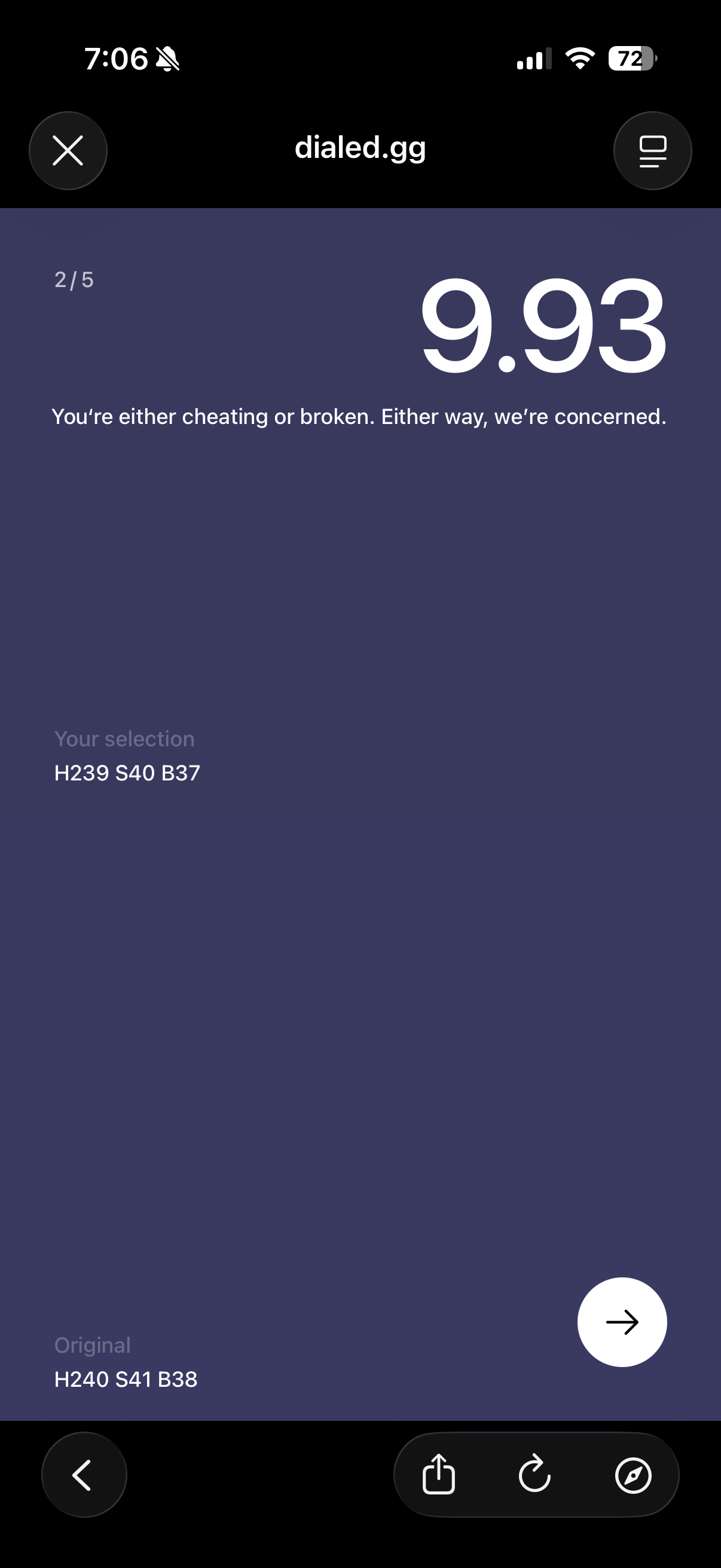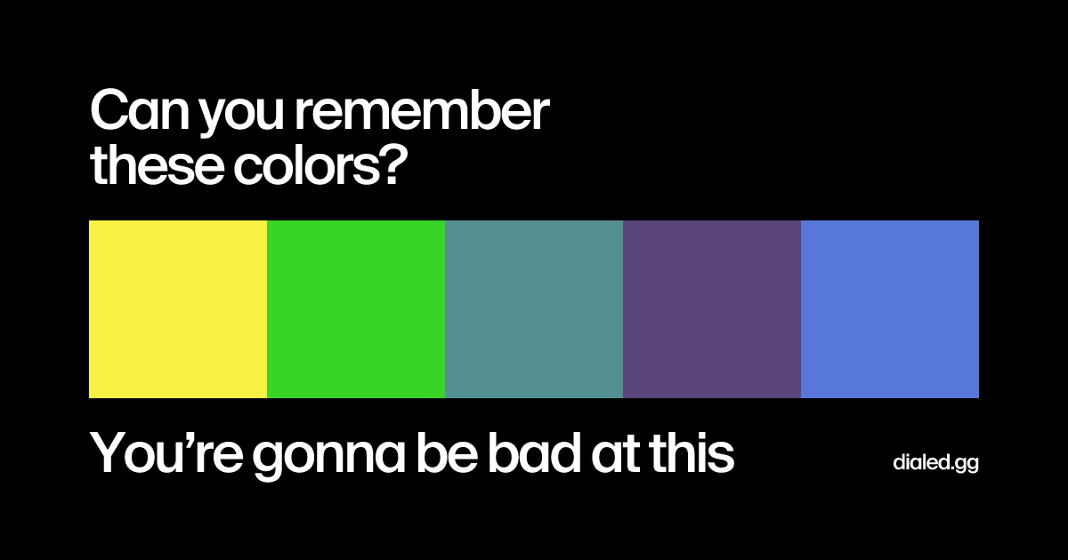 We show you colors. You recreate them from memory. Challenge friends to beat your score. It's harder than you think. Play free at dialed.gg.