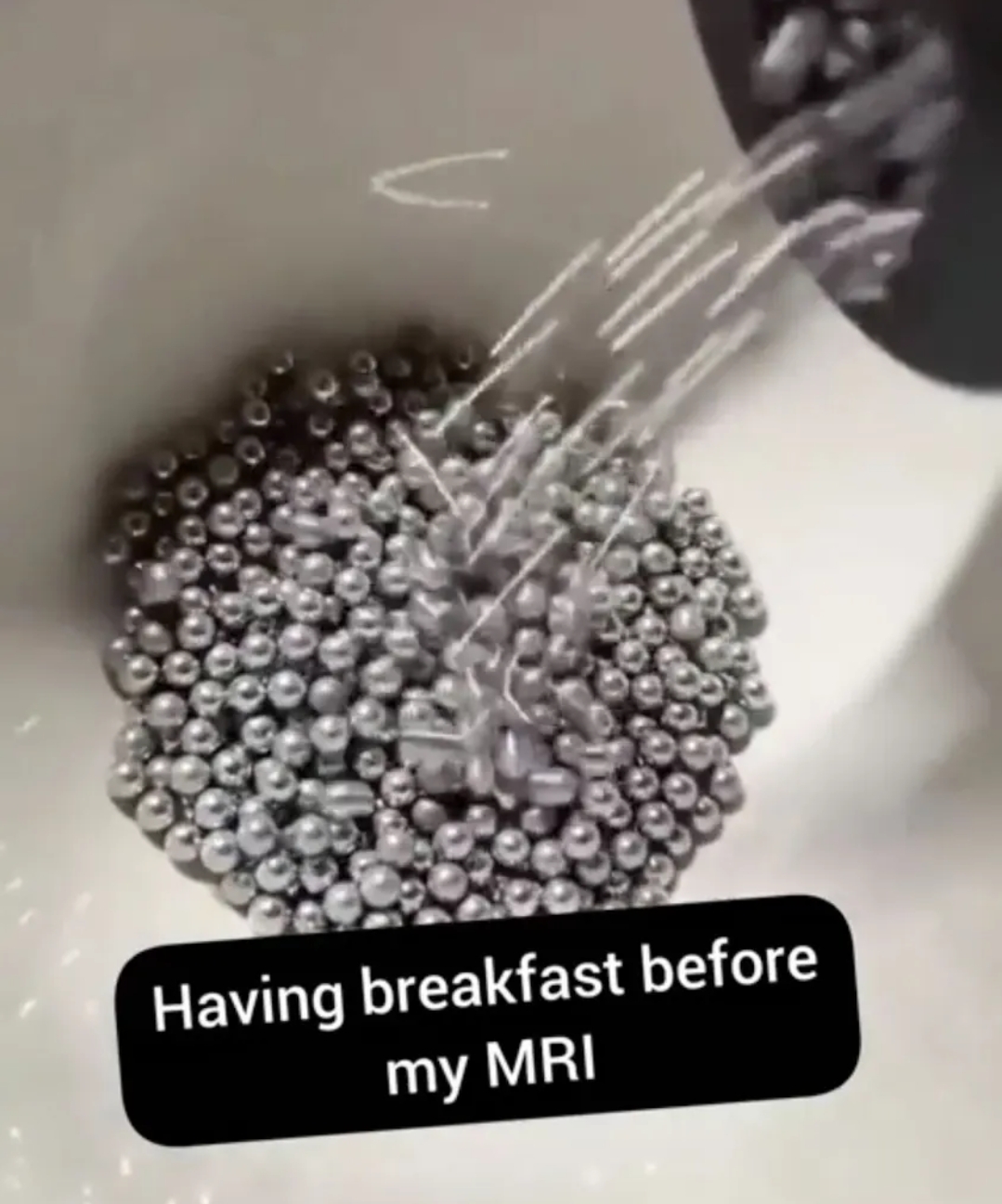 Usually titanium, but yeah sometimes medical stainless steel. Both are non-ferromagnetic, especially titanium. These balls look like they could well be normal steel or any other metal. Also, implants - unlike these metal balls - are usually screwed firmly into your bones. So yeah, implants should be mostly fine on MRI. Loose balls of dubious metal? Wouldn’t advise it. Keep in mind MRIs are literally powerful enough that metals in tattoo ink can even be an issue - which the article you linked mentions itself.