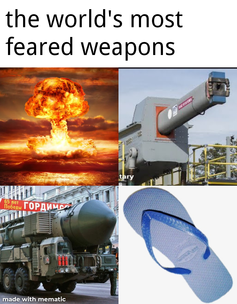 The problem with railguns is that chemical propellants are just really, really good. The main thing that came out of the railgun project (pictured in this meme) was the projectile that can survive extreme acceleration and maintain incredible accuracy. It is just better to shoot said projectile out of traditional gun instead of the railgun because the equipment required to run the railgun is huge and the projectile will fit in an existing terrestrial howitzer. That said, the equipment size and energy requirements really aren’t a huge problem for naval applications, but then again you can do the math and find that an equivalent size of traditional gun can sling way more mass per hour than the railgun can and you can make a hundred of them for the cost of one railgun.