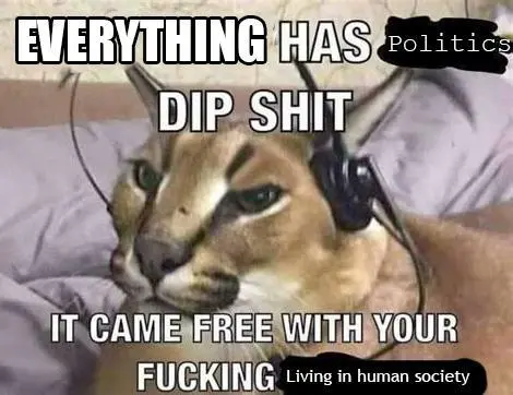 BUT we are in a fucking shitpost community! Not a political one! Not world politics! Ffs that would be ok, but why do you have to infest every fucking corner of the internet with this shit?