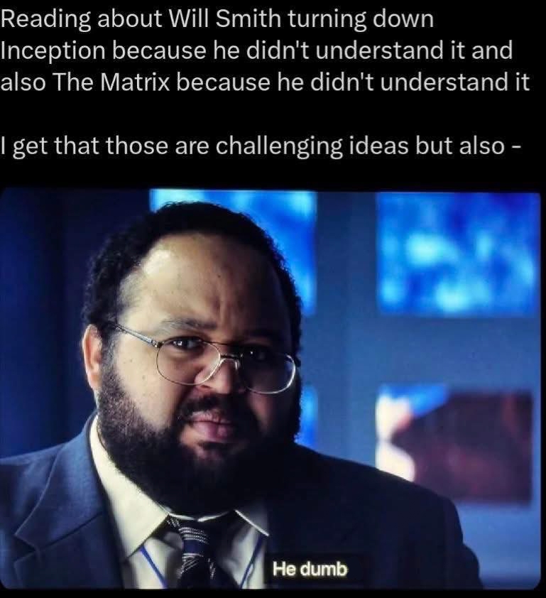 Agreed and his personality takes over the story which works for men in black but I don’t think it would for the matrix.