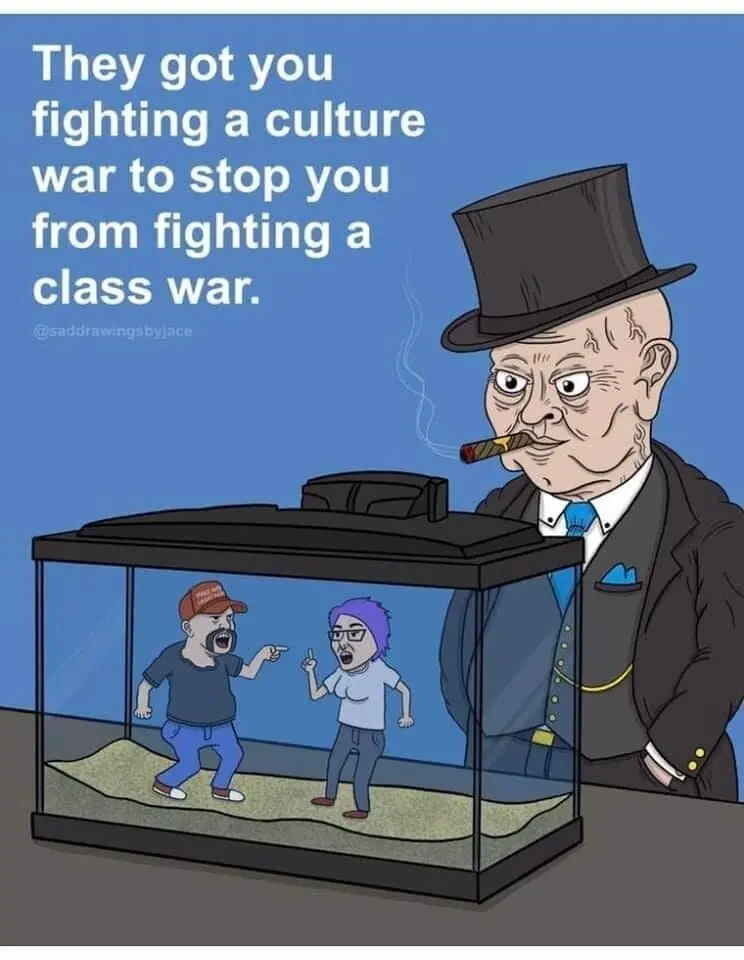 I think what they’re referring to is how the ruling class likes using the “right vs left” rhetoric to distract us from the “ruling class vs. Working class” / class consciousness rhetoric. It’s an effective way to keep us divided.