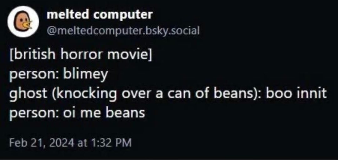 ghost (knocking over a can of beans): boo innit