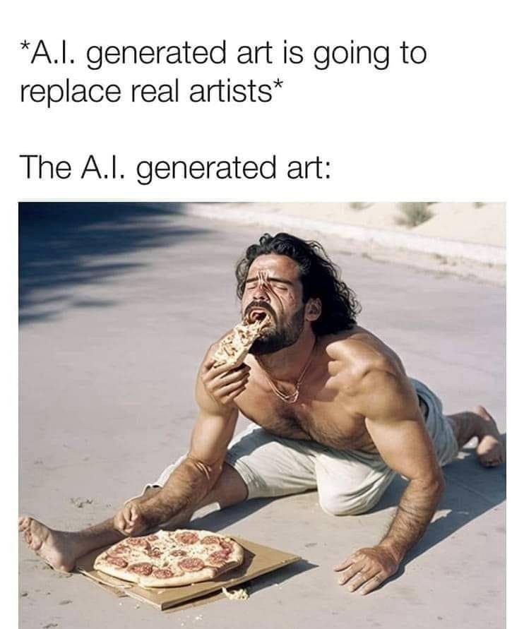 minus-squarealtphoto@lemmy.todaylinkfedilinkarrow-up1·6 days agoSomeone passed away happy before this whole pizza problem. Probably.