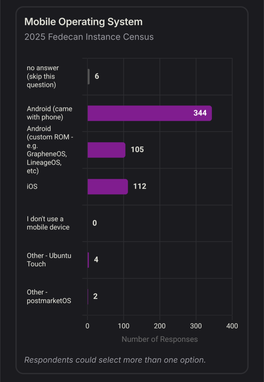We’re still working on publishing the results of the census we ran a few months ago (sample size of around 600, where most users were from our Lemmy/Piefed instances)