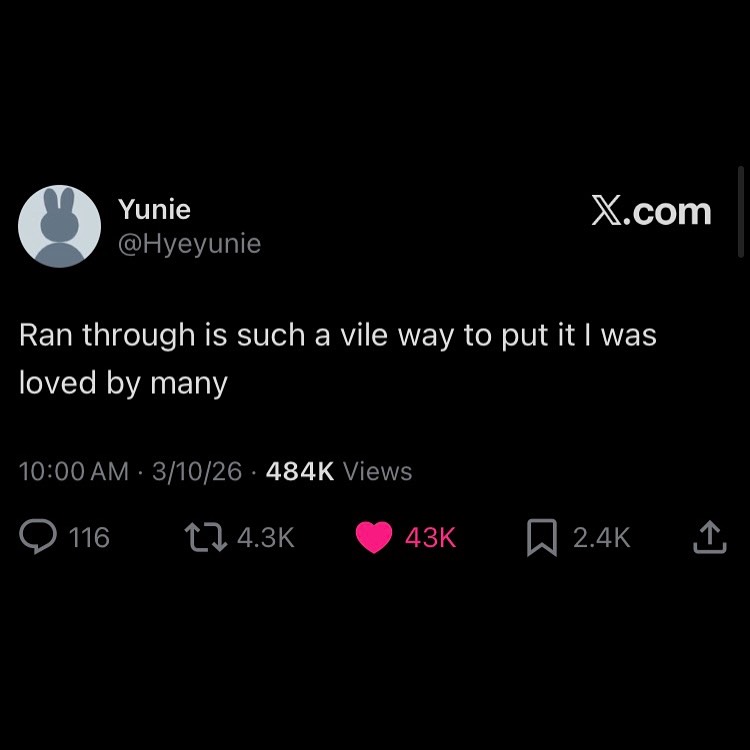 Idk if this is a joke, but “ran through” is what the kids these days use to degrade promiscuous women, eg “she’s been ran through a lot”