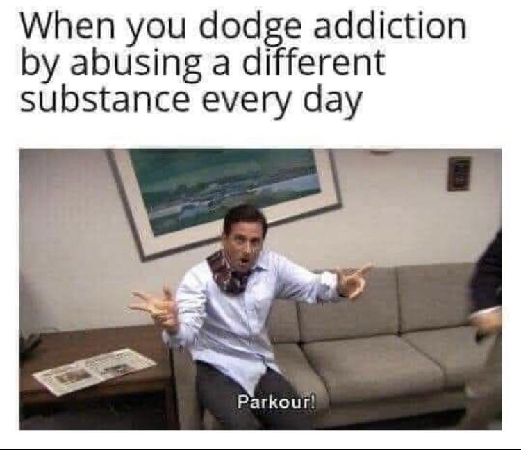 I cant just do a Friday. It leads to Saturday, then next week, and month later I cant get anything else done but get high. Im at the end of the progression. There is no just enjoying an evening for me anymore. Next time I pick up, l die. Last time I almost did.