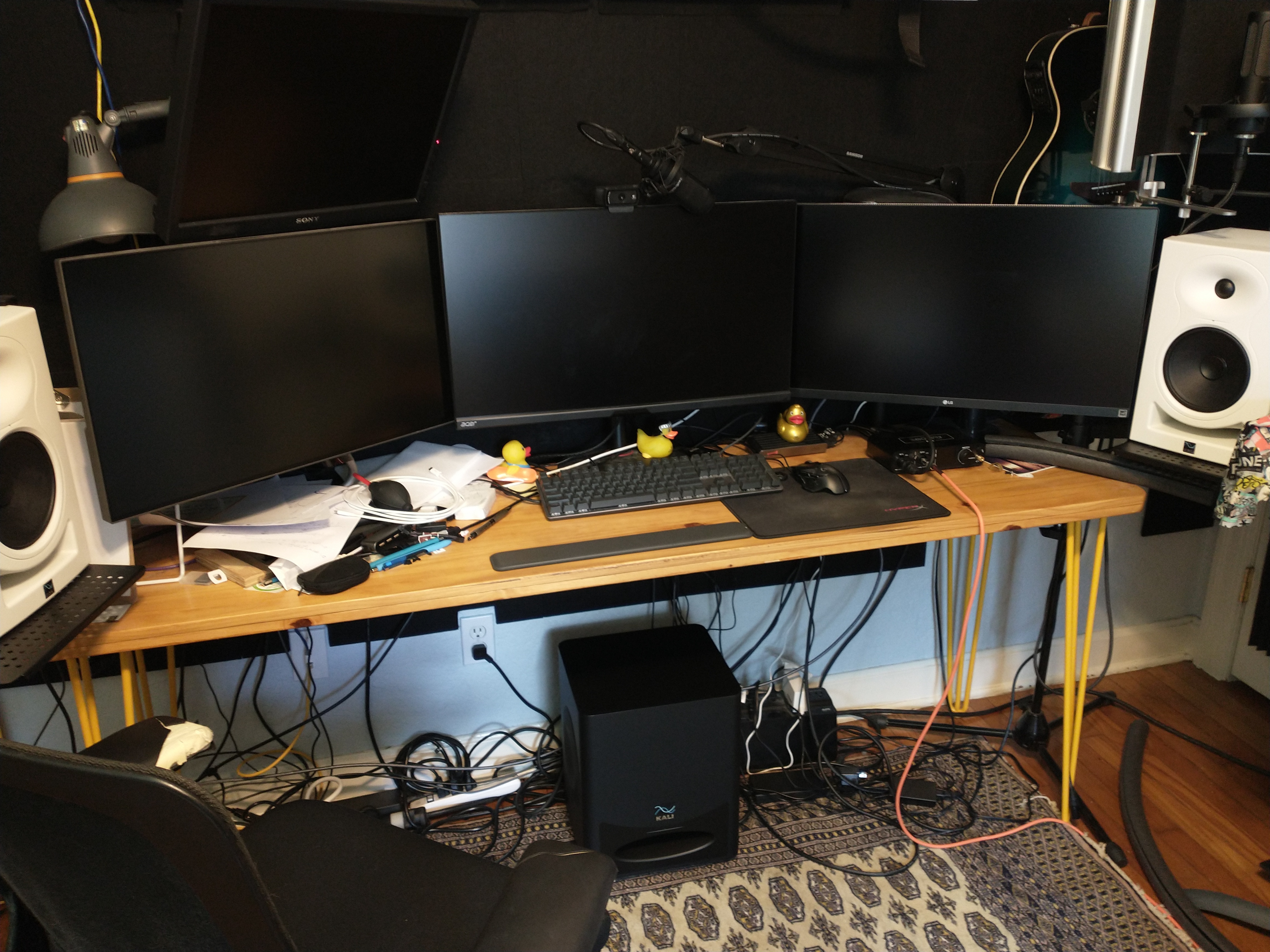 You will have outsmarted even Einstein if you can figure out how to put the speakers where the monitors are without removing them