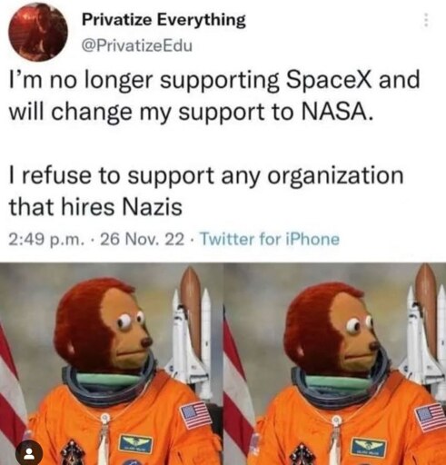 Fun fact, my grandfather was a leading engineer on the Saturn V and other aerospace projects, and according to my dad he apparently got into arguments with Von Braun. Considering the line of work and knowing some of my grandfather’s written down arguments from that time, it’s likely these arguments were more about random physics than anything else, but I like to think it was about von Braun being a Nazi piece of shit.