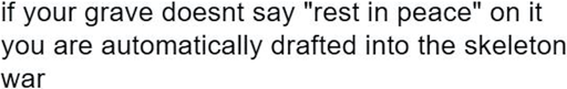 minus-squarepainteddoggie@lemmy.worldlinkfedilinkarrow-up2·10 months agoThis would be a fun game to play in a graveyard.