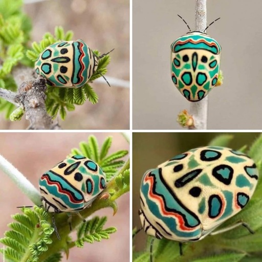 Native to tropical Africa, this tiny shield-backed bug uses its dazzling design to warn predators: “I’m toxic, don’t touch me!”
