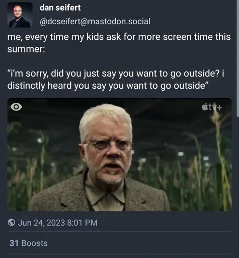 I think of this meme often. My wife and I recently bought a house in a quiet cul-de-sac of a safe older neighborhood. My daughter went from spending most of her time indoors (because there was fuck all for her to do or go, and surrounding streets were busy) to spending probably 75% of her time outside, whether playing with friends or flipping rocks in my garden to look for bugs. It’s wild how much a child’s interests change when their environment actually provides them the green spaces they need.