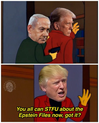 Both the meme and you are kinda wrong. Today, with Trump, Netanyahu does indeed hold influence on Trump, and has for some time. He likely has held influence on some democrats as well. This is because Israel and Russia both likely received blackmail material from Epstein, and are pressuring Trump with that blackmail today. This was always the stick to keep Trump in line. The meme is wrong because Netanyahu is happy with Trump, while Putin isn’t. I believe it is much more likely that Putin is pushing the Epstein narrative now to replace a disobedient Trump with Vance, as Putin and Heritage can do a lot sans Trump. You will notice that the conservatives calling for the list now are generally pro Heritage Foundation, a Putin ally. President Vance is the plan now.