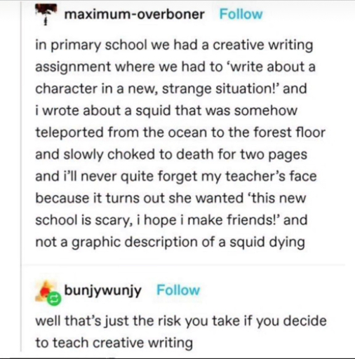 lol … teacher tells students to be creative … teacher is shocked when students are very creative