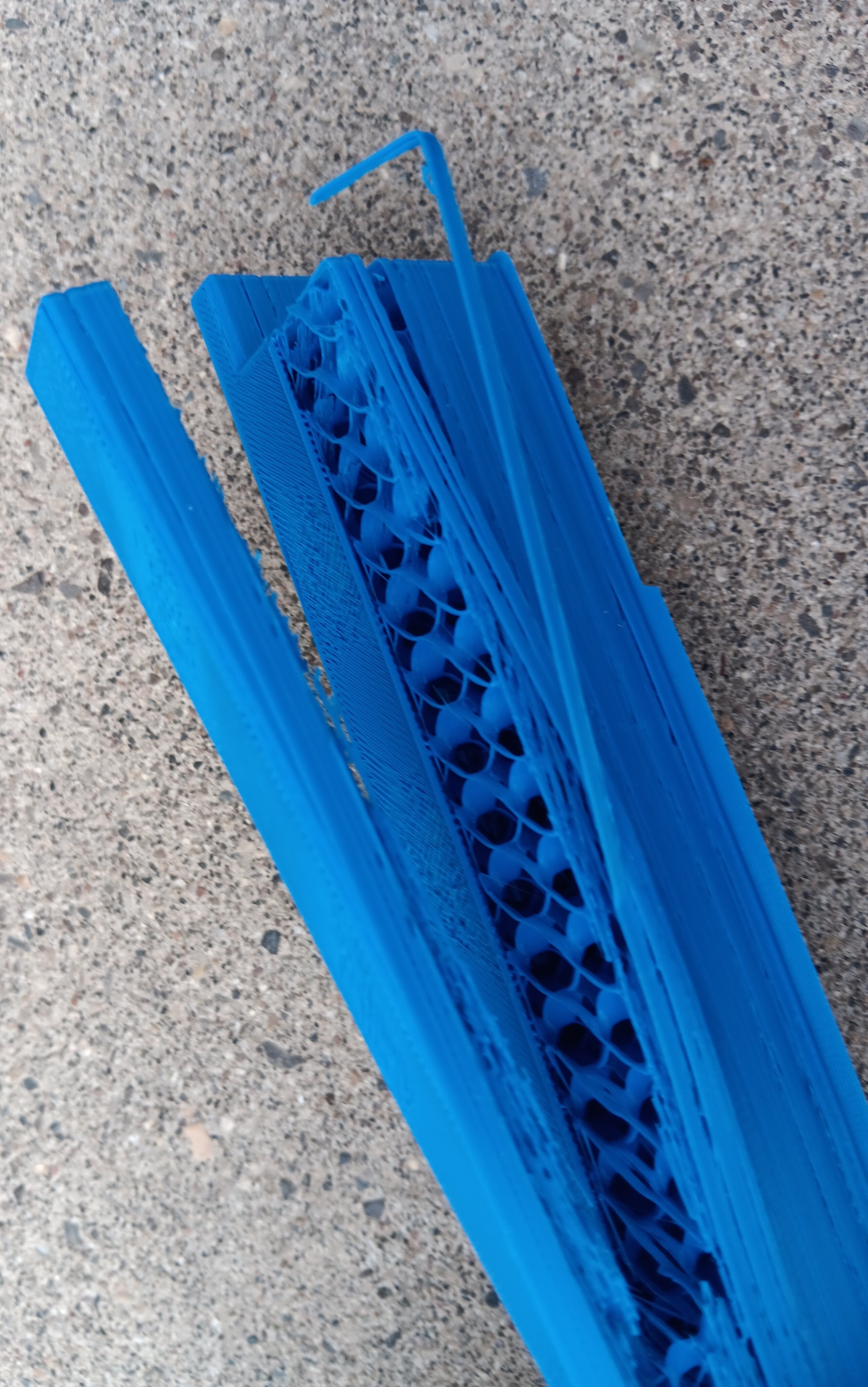 Now, onto my current issue. I have a model I made that has some layering issues that make it easier to pull apart than it should. But the weird thing is it only happens to larger prints. I have tested this pretty easily because I have been making simple shapes will learning how to do parametric modeling. In the smaller shapes, the print is SOLID. But when I change 1 parameter to make it longer, the print is more brittle and the layers are not as clean as the shorter version. The top layer is also not as clean as the shorter version. The practice object I am making is basically 2 connected rectangles with one taller than the other. I printed several with 30mm length and they printed fine. When I change the length to 300mm, it prints poorly. That is what the picture I attached shows. I have tried printing several times on different parts of the plate, thinking maybe there is a part on the plate that is not flat, but the is not solved that way. The brittleness seems pretty clear to be a layering issue, but I am not sure what they layering becomes an issue when the object becomes longer…