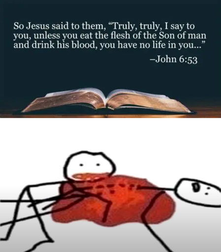 The cannibalistic symbolism in Christianity has always been incredibly bizarre to me. It’s even more bizarre that Christians don’t seem to think anything of it.