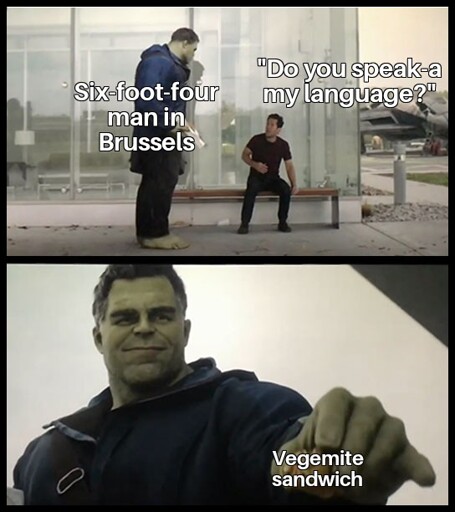 Here’s me thinking that Brussels alsos eats Vegemite. Went back and it made a lot more since now (I need sleep)