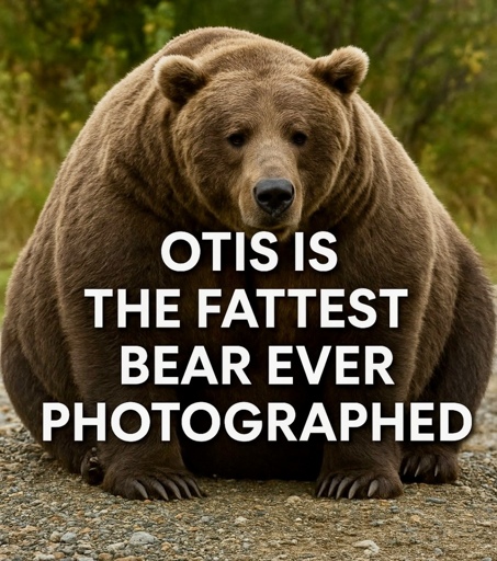 The picture looks unusually HD, and the font looks like a common AI font. Seems like there actually is a particularly fat bear named Otis though, so idk. Maybe it’s a real, high quality image with an unfortunate font choice, maybe it’s a fake image inspired by the real bear, who knows.