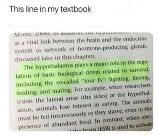 minus-squareknight_alva@lemmy.worldlinkfedilinkarrow-up3·6 months agoAs it pertains to the function of the hypothalamus, what is the difference between fighting and fending?