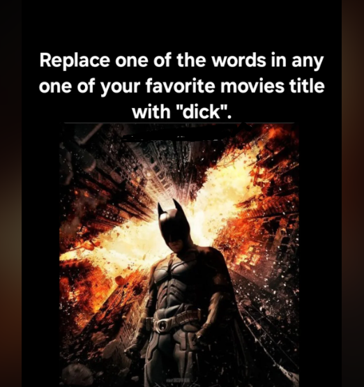 minus-squareOmgpwnies@lemmy.worldlinkfedilinkEnglisharrow-up2·4 months agoFor Marvel: Dick-Man Deadpool Dicks Wolverine (Ryan Reynolds would be all for this one :p)