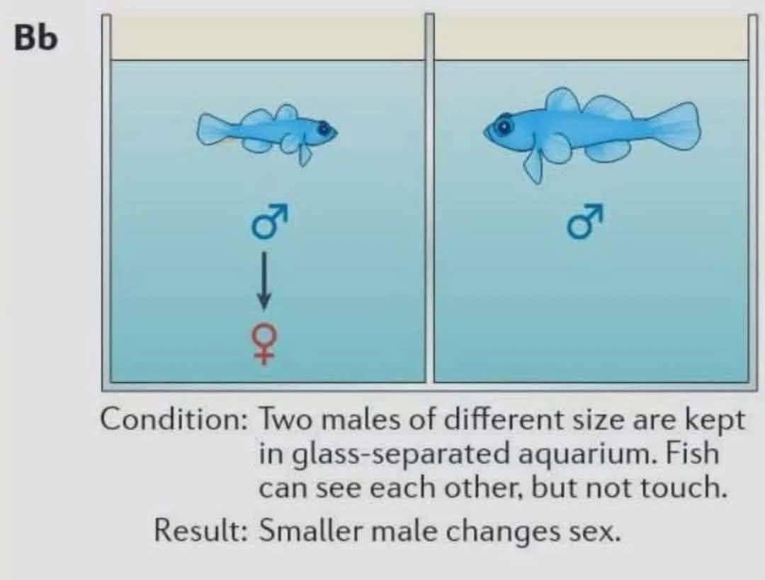 For instance, a group of male fish might only have one female because their species found it best to have one “queen” and many soldiers.