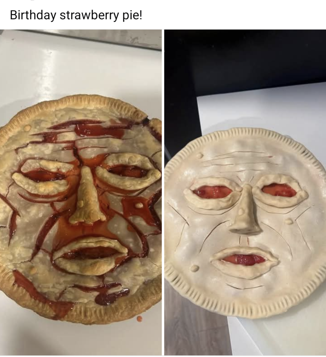 Ha ha ha ha! Oh dear… Forgive me but I am enjoying this… What a fool you are! I’m a pie! How can you, a diabetic, eat a pie? What a grand and intoxicating innocence! How could you be so naive?
