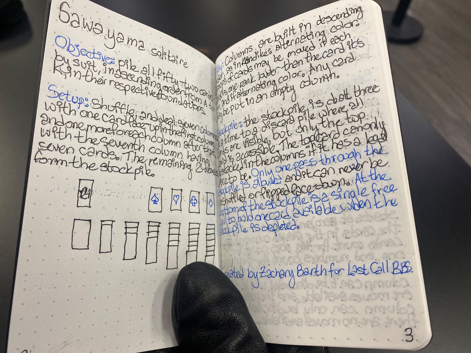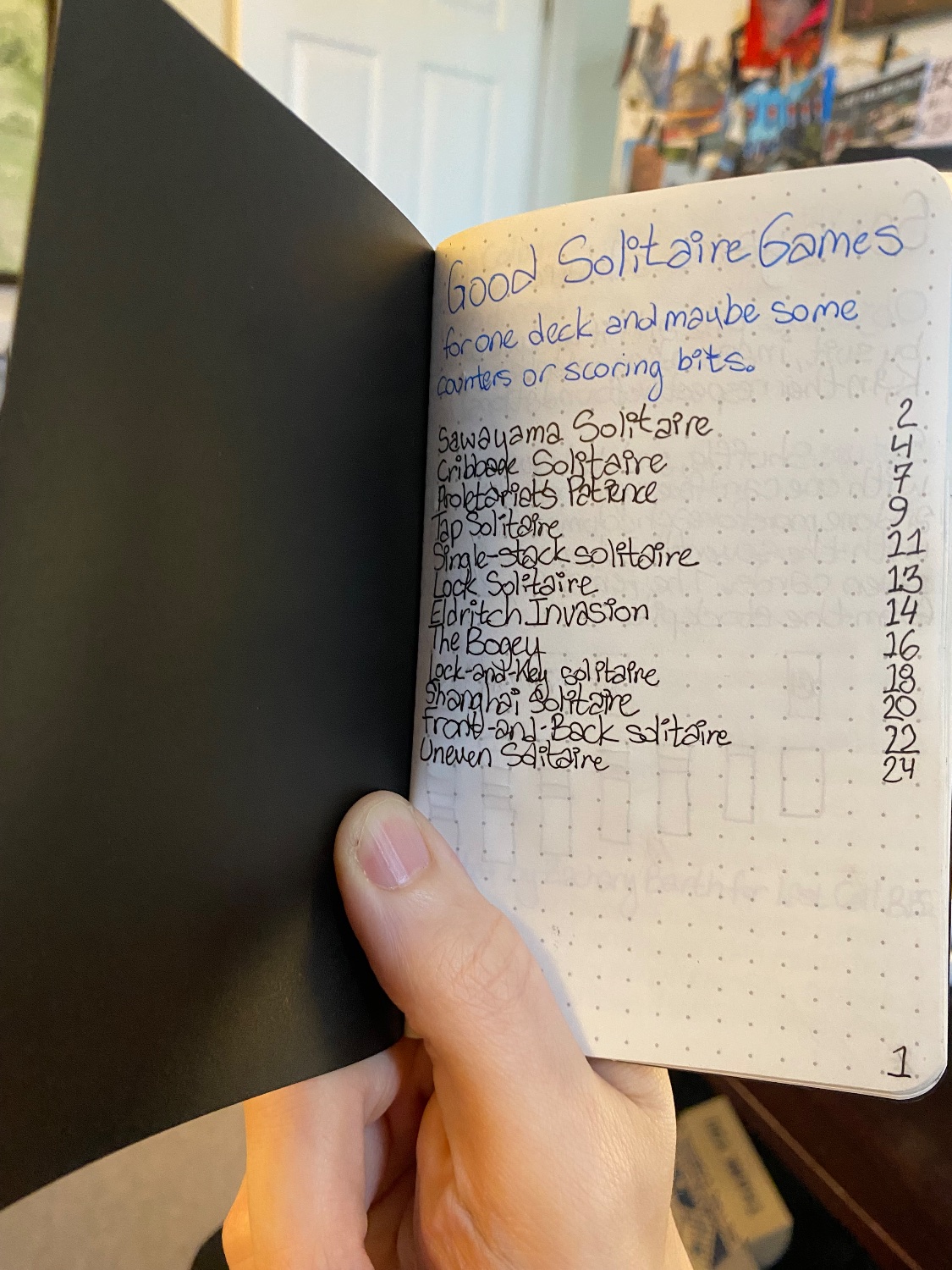 That’s why I keep this tiny stone-paper notebook with handwritten instructions on my favorite games, along with a narrow little air deck and a few counters.