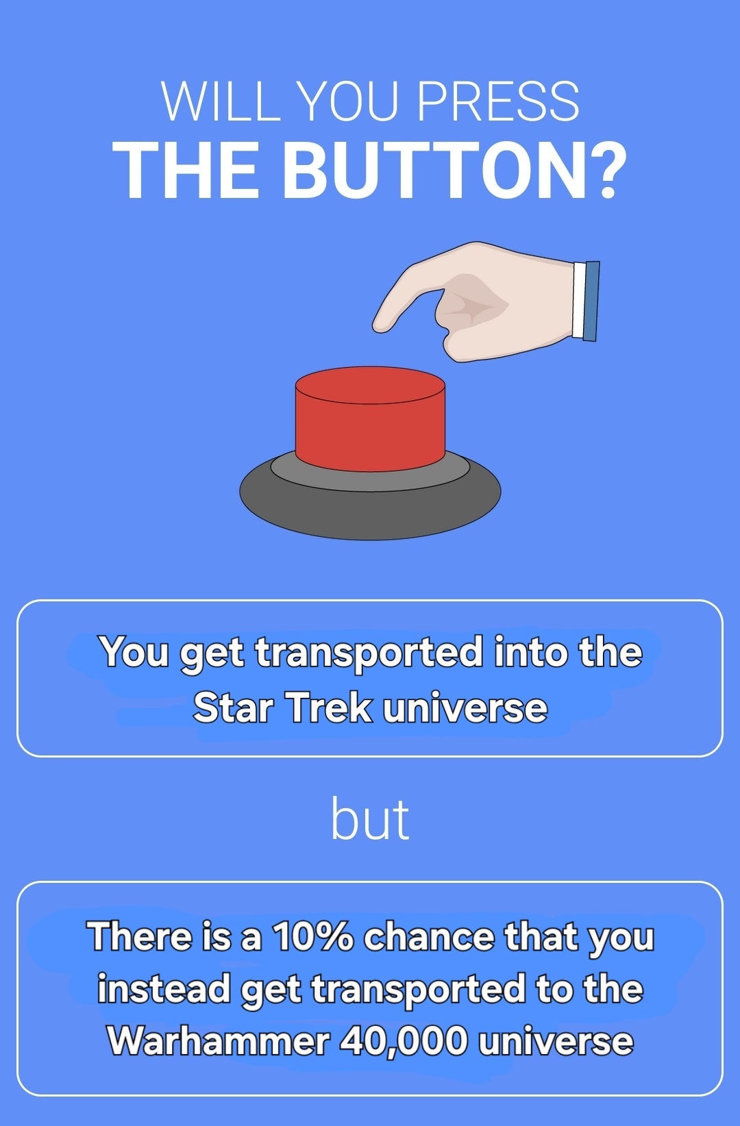 minus-squareCaptPretentious@lemmy.worldlinkfedilinkarrow-up15·2 months agoI mean, it’s the 40k universe, there’s a 100% you gonna die. So, really, it does fit your criteria… just in a roundabout way.