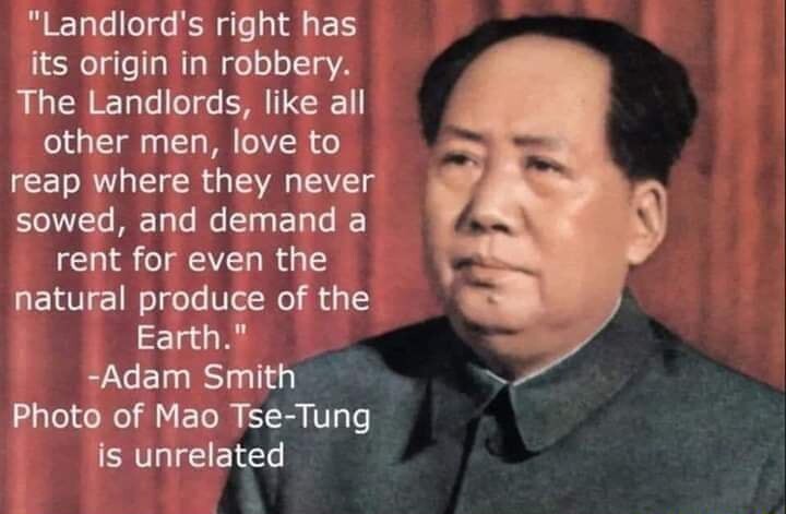Smith goes into great detail in “The wealth of Nations” about how landlords are parasites. He explains why theoretically and empirically and gives specific examples. He lacked an understanding of historical materialism, so he wrongly thought capitalism would naturally get rid of them.