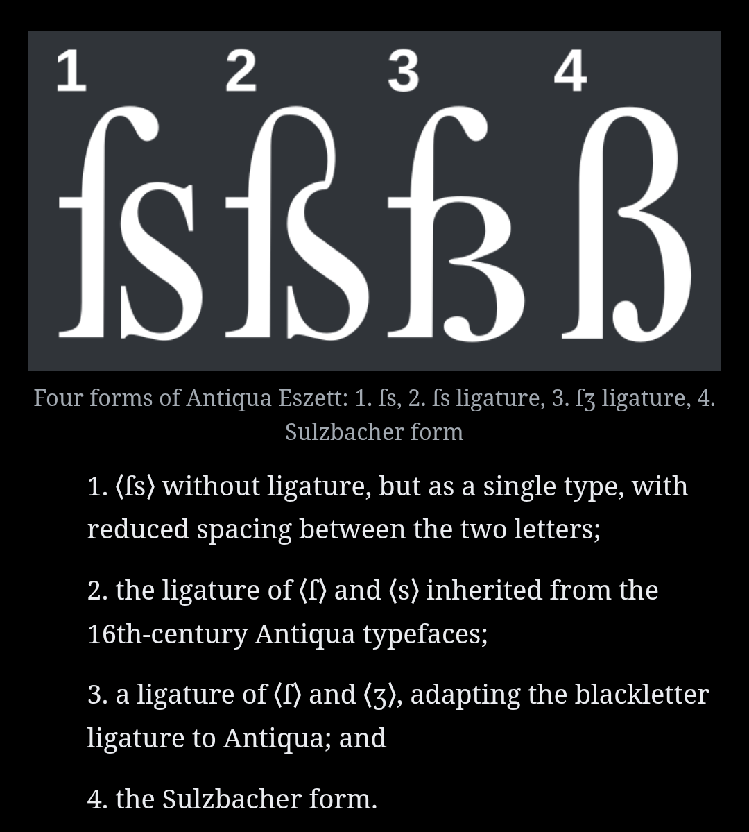 The ß or “esset” (also known as “scharfes s” or “sharp s”) is actually the combination of the old long s (ſ) and a regular s.