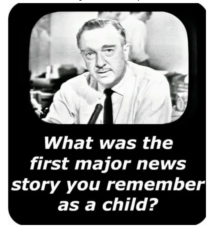 For myself that would be 9/11. I remember being confused when the teacher put it on the tv. Thought we were watching an action movie.