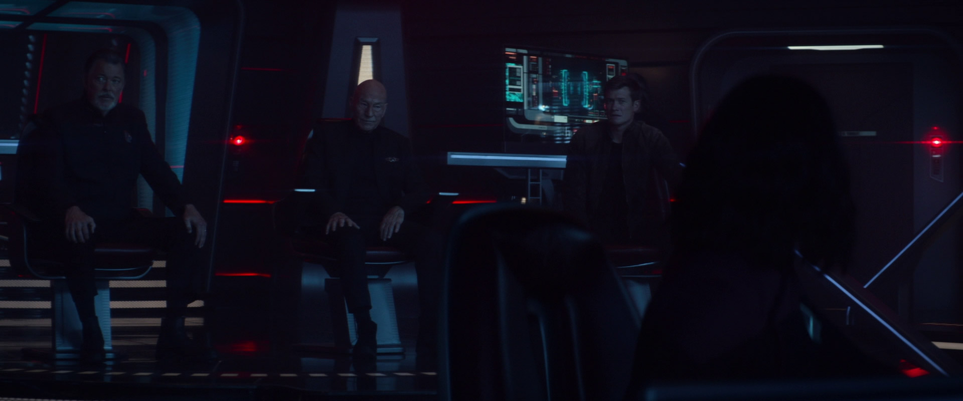 I don’t see the problem? I can see the character’s expressions, their stances, their clothes and clothing decorations, the objects they’re holding… I don’t necessarily agree that this should be the way a federation starship would be lit, but I don’t see why people would say they couldn’t see anything.