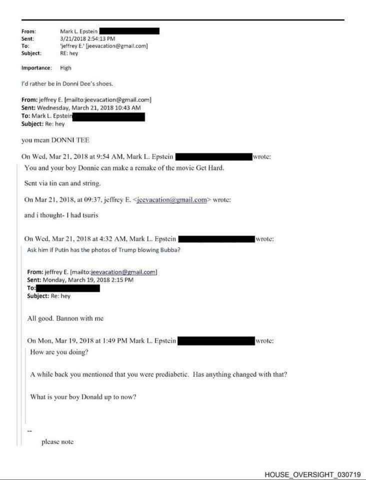 One of the new Epstein e-mails references “the photos of Trump blowing Bubba,” which people have taken to mean Bill Clinton, as that is Clinton’s nickname.
