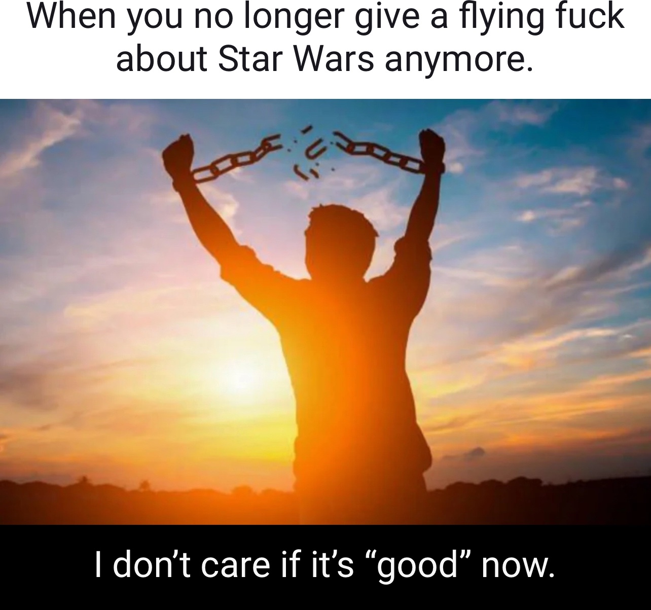 Fair point! To be honest, I had a lot of internal conflict about saying anything at all, what with this being a “I don’t care about Star Wars” thread and all. I’ve never let reading the room stop me in the past though lol