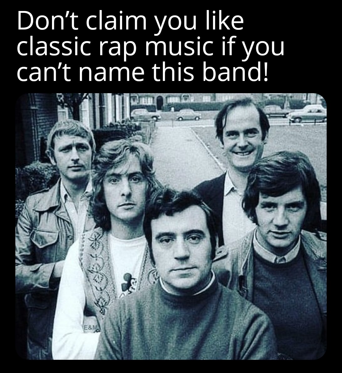 minus-squareRhaedas@fedia.iolinkfedilinkarrow-up17·3 months agoThey originally were the Knights Who Say Ni, but broke up for a while for some solo work, then reunited as The Knights Who Say Ekki Ekki Ekki Pitang Zoom Boing. Best rap album ever, with the chart topper “Only a Flesh Wound”.