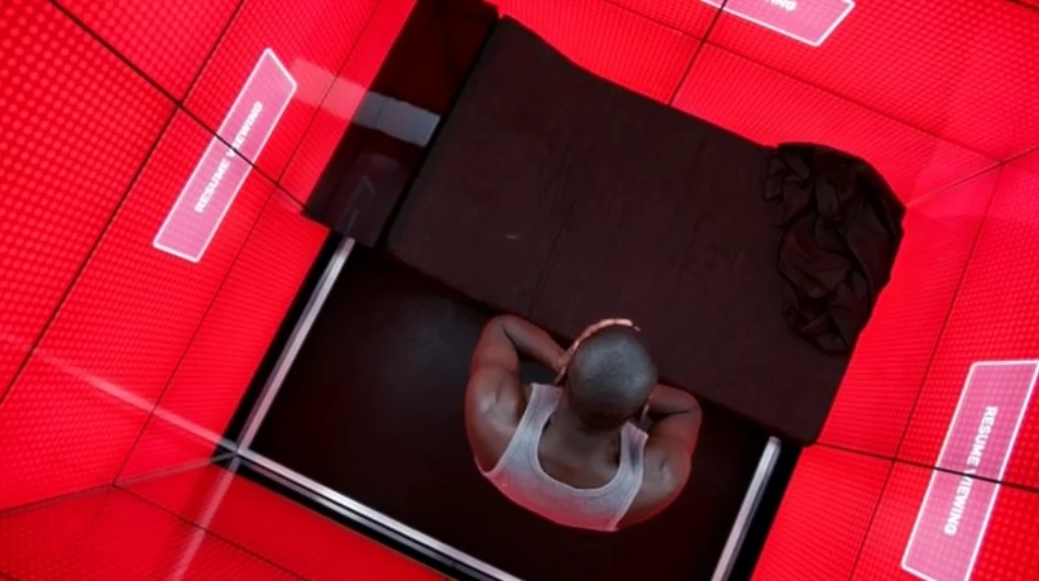 That’s Black Mirror S01E02 - Fifteen Million Merits. It’s on Netflix.