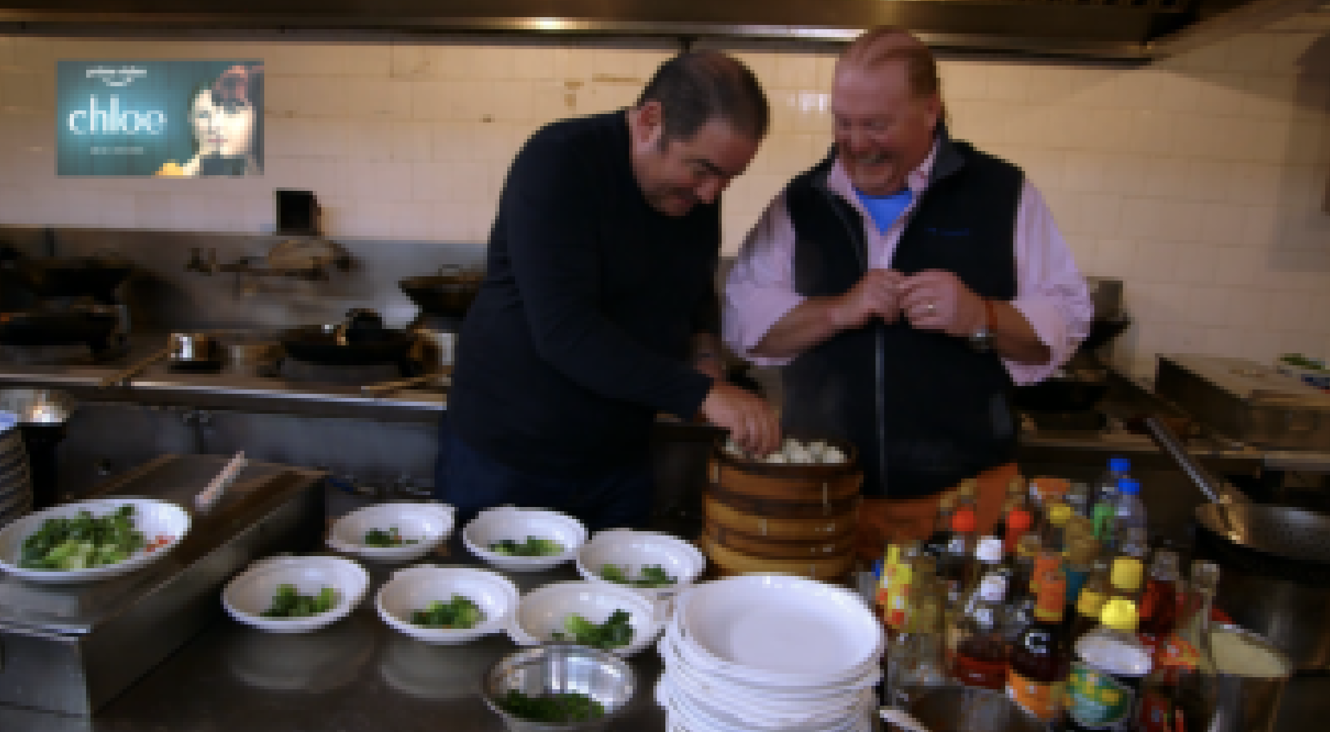 What do we have on a kitchen wall? But of course, a banner for an upcoming Streaming TV show.