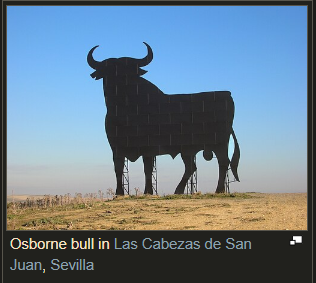 In Spain we have an roadside advertising for the Brandy de Jerez made by the Osborne Group, declared “cultural and artistic heritage of the people of Spain.”, the Osborne bull, which you can find everywhere in Spain