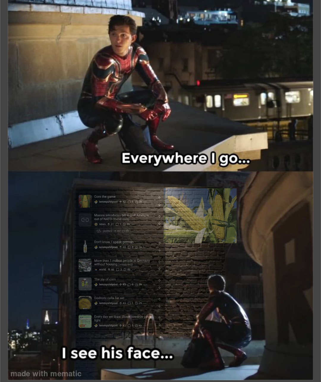 Track_Shovel@slrpnk.net to Lemmy Shitpost@lemmy.worldEnglish · 3 months agoEverywhere I goimagemessage-square1linkfedilinkarrow-up186arrow-down14
